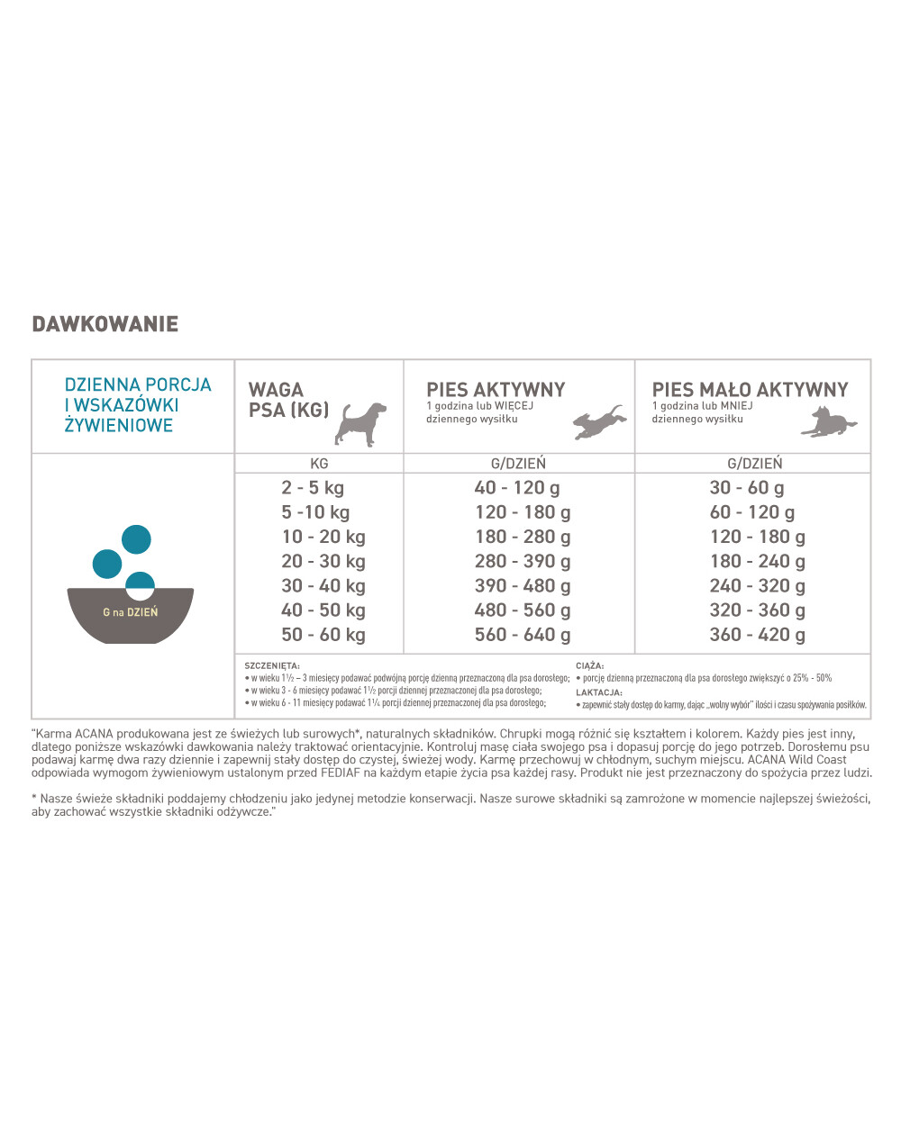 Porce uvedené v tabulce jsou přibližné. Množství krmiva vždy přizpůsobte individuálně svému psovi s ohledem na jeho kondici, zdravotní stav, chuť k jídlu a sklony k přibírání na váze.