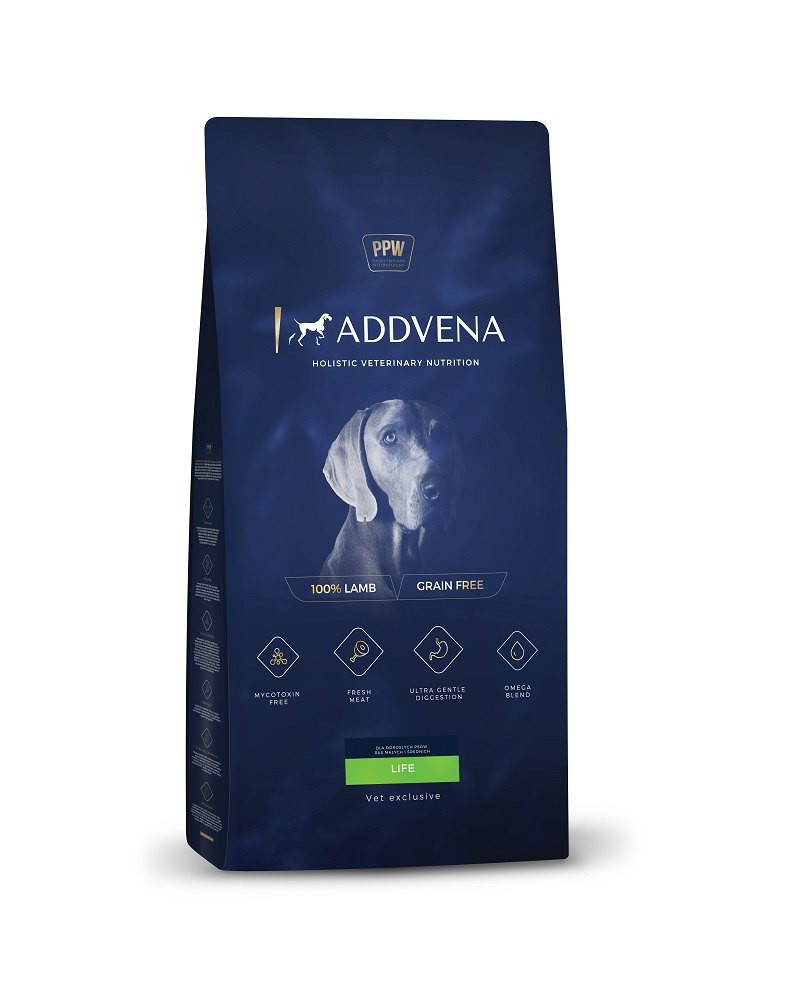 ADDVENA LIFE je vysoce chutné, plnohodnotné krmivo bez obilovin, jehož základem je čerstvé jehněčí maso, speciálně pro dospělé psy s hmotností do 20 kg. Obsahuje bílkoviny živočišného původu (jehněčí), a proto je to výrobek doporučovaný zejména pro psy s potravinovými alergiemi a dokonce i pro psy s alergií na jiné bílkoviny než jehněčí nebo hovězí.
