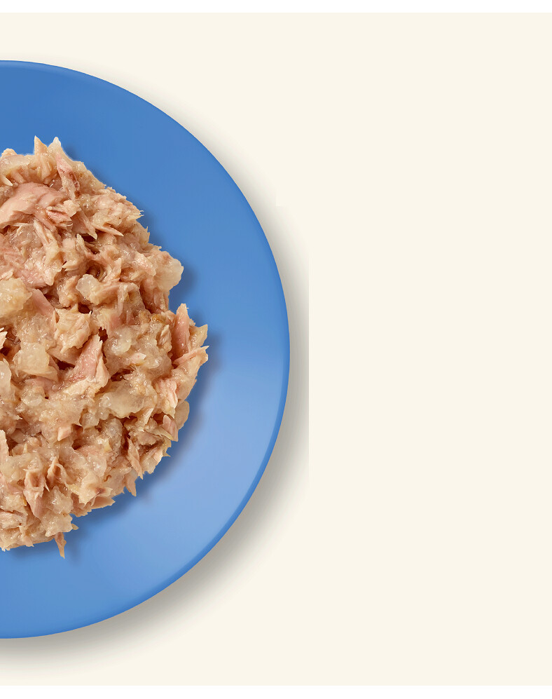 Tuňák 60 %, rybí vývar 28 %, mořské řasy 5 %, ančovičky 5 %, rýže 2 %.
