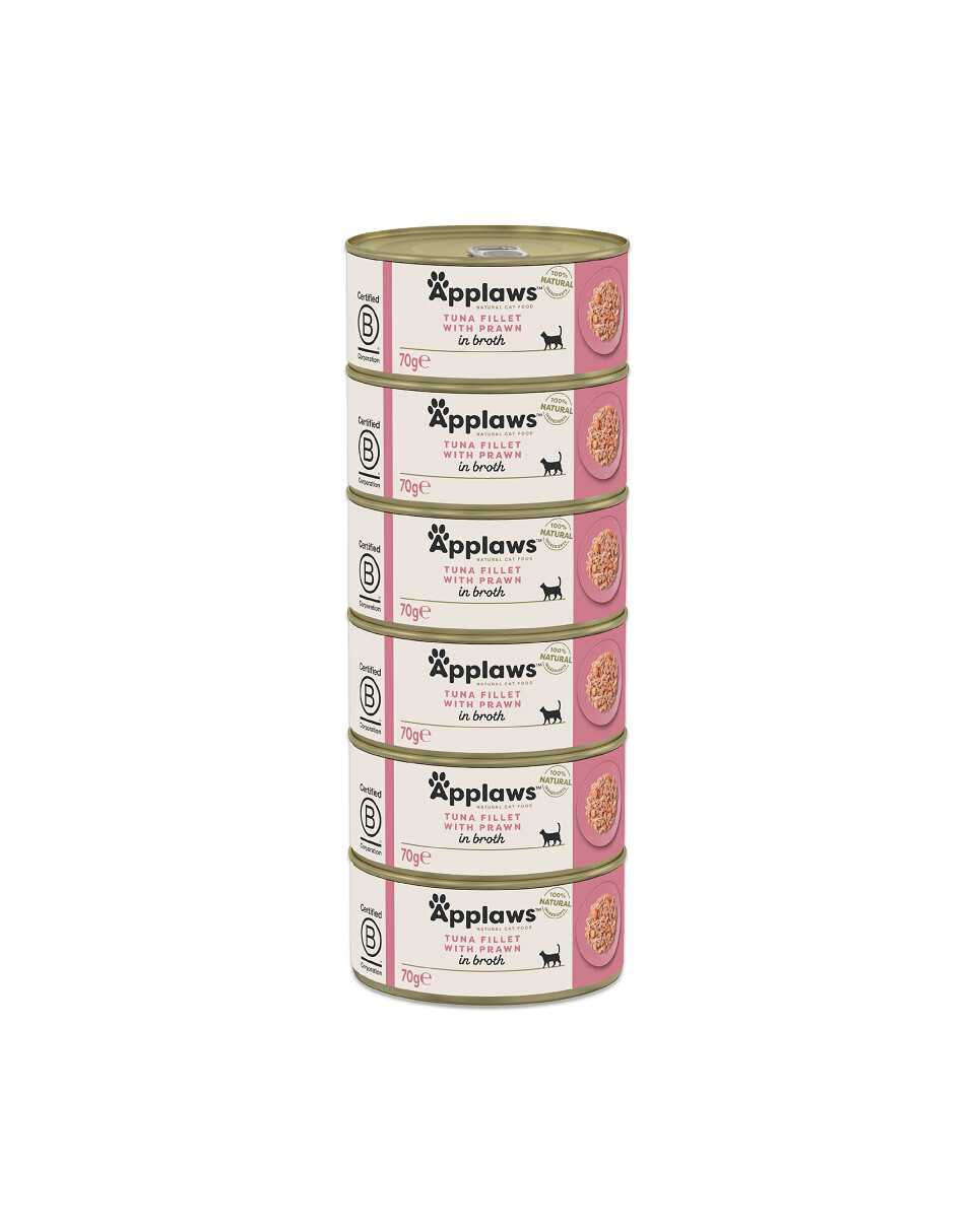 Složení: filet z tuňáka 52 %, krevety 23 %, rýže 1 %, rybí vývar 24 %. Bez přídatných látek.