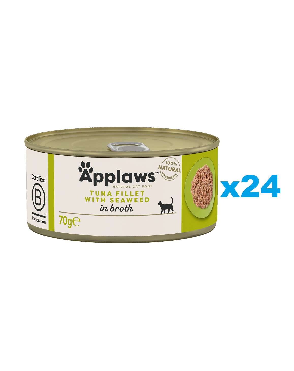 Složení: filet z tuňáka 70 %, rýže 1 %, mořské řasy 5 %, rybí vývar 24 %. Bez přídatných látek.
