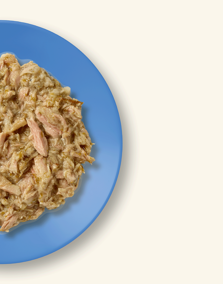Tuňák 60 %, rybí vývar 28 %, mořské řasy 5 %, ančovičky 5 %, rýže 2 %.
