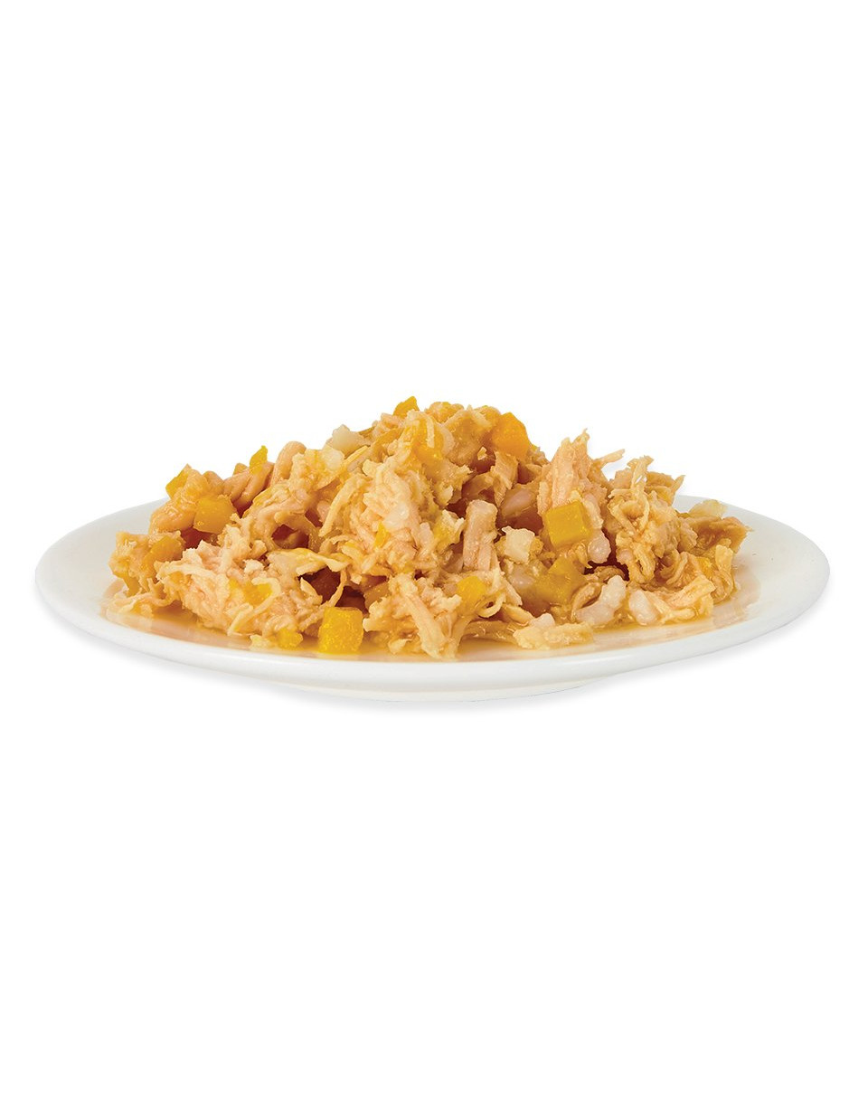 Jídlo se skládá pouze z přírodních složek uvedených ve složení. Neobsahuje další zbytečné přísady. Kuře obsažené v potravě poskytuje bílkoviny živočišného původu s nejlepším a nejvýhodnějším aminokyselinovým profilem pro kočky. Dýně je vynikajícím zdrojem vlákniny.