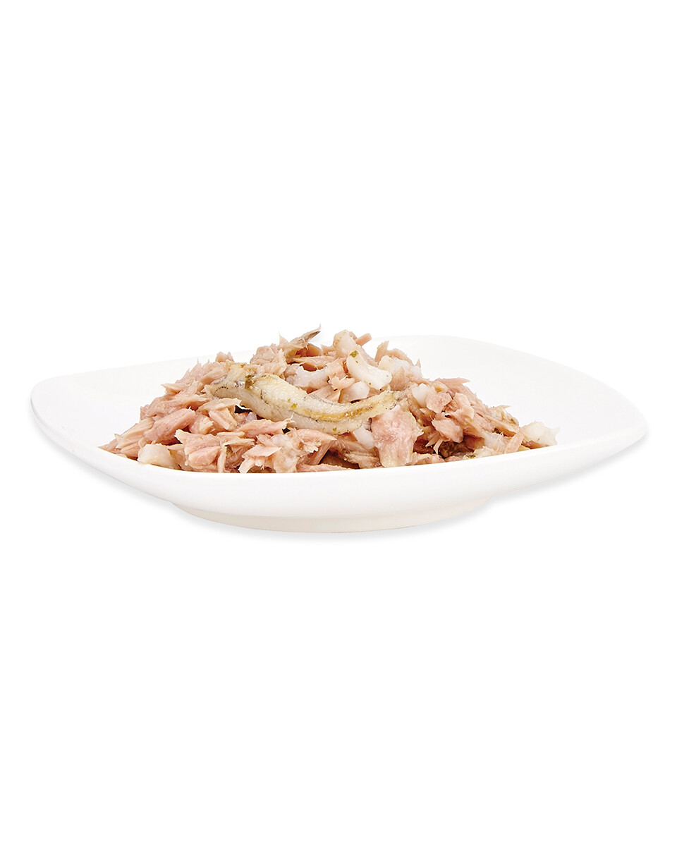 Složení: filet z tuňáka: Složení: 60 %, rybí vývar: Složení: 24 %, ančovičky: 5 %, mořské řasy: 5 %, rýže: 2 %.