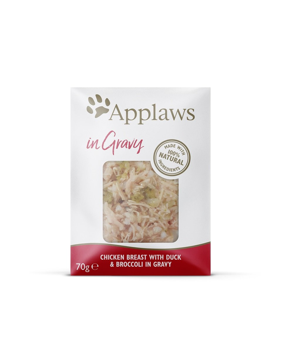 Přírodní doplňkové krmivo pro dospělé kočky. Kuřecí a kachní prsa s brokolicí. Vše v chutném želé.