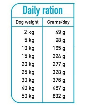 Krmení: Polovlhké krmivo pro psy vhodné pro všechna plemena psů. Tabulku doporučených denních dávek (uvedená množství jsou přibližná) naleznete na zadní straně balení. Množství krmiva se může lišit v závislosti na aktivitě, plemeni psa a podmínkách prostředí. Psi by měli mít vždy k dispozici čistou a čerstvou vodu. Nádobu skladujte těsně uzavřenou, na chladném, suchém a dobře větraném místě, mimo dosah světla a slunečního záření.