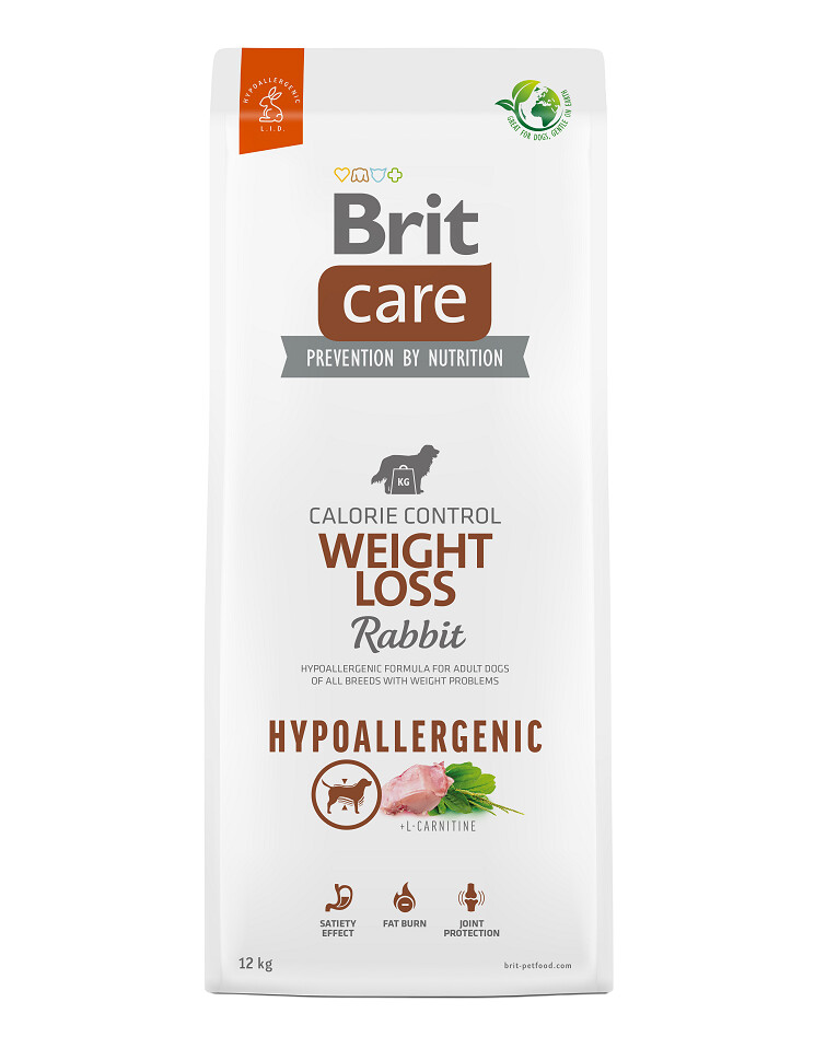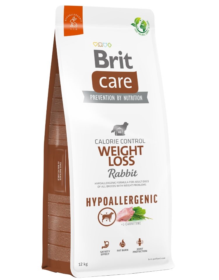 Kompletní krmivo pro psy. Hypoalergenní receptura Králík s rýží pro dospělé psy všech plemen s problémy s nadváhou.