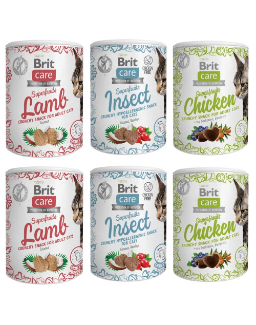 BRIT Care Cat Snack Superfruits Chicken obsahuje mimo jiné kuřecí maso, rakytník a borůvky. Tyto masové pamlsky bez obilovin jsou pro kočky vynikající svačinkou. Jsou lehce stravitelné a neobsahují přídatné látky a barviva. Jsou prospěšným krokem k zajištění zdraví a výborné fyzické kondice vaší kočky.