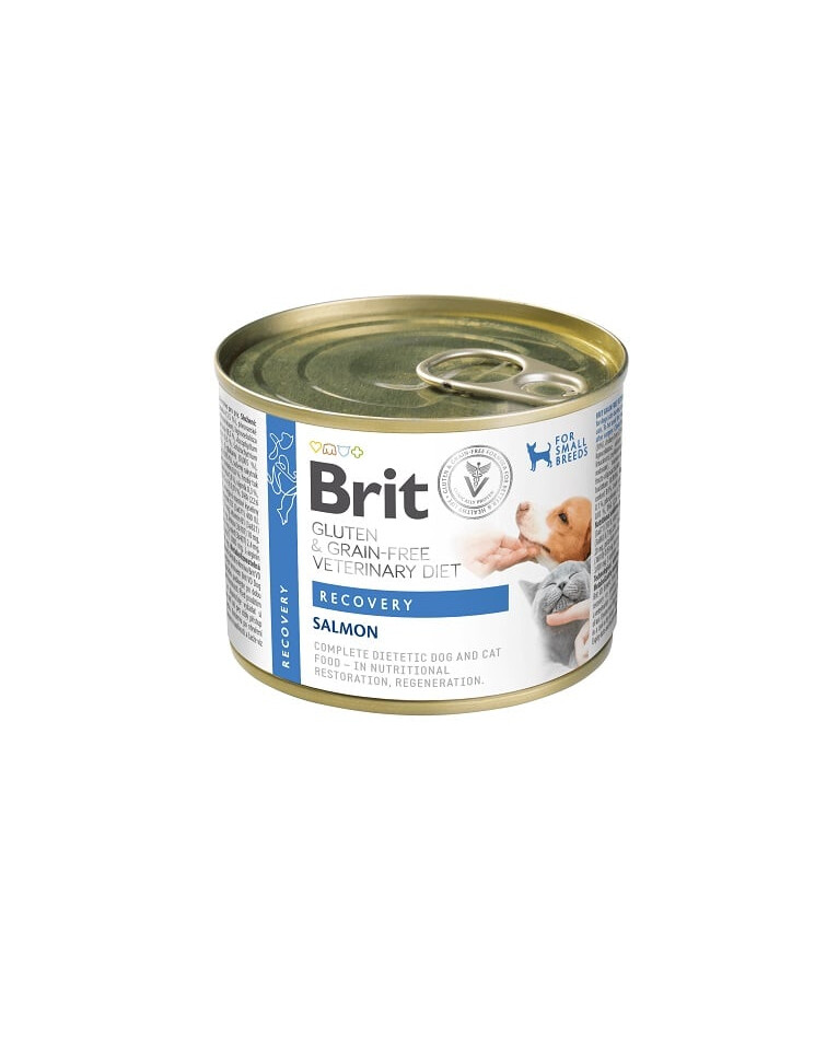 Brit Veterinary Diet Dog/Cat Recovery je specializované dietní krmivo, vyvinuté pro zvířata v období rekonvalescence. Jeho receptura spojuje snadnou stravitelnost s vysokou nutriční hodnotou, což umožňuje účinně podporovat regeneraci po prodělaném onemocnění, chirurgickém zákroku nebo jiných zátěžích organismu. Losos a kuřecí játra jsou zdrojem snadno vstřebatelných bílkovin a nezbytných živin, které podporují obnovu svalové hmoty a navracejí síly. Další podporu poskytují prebiotika a beta-glukany, které podporují mikroflóru střev a imunitu. Krmivo neobsahuje lepek, takže je bezpečné i pro zvířata s citlivým trávicím systémem.