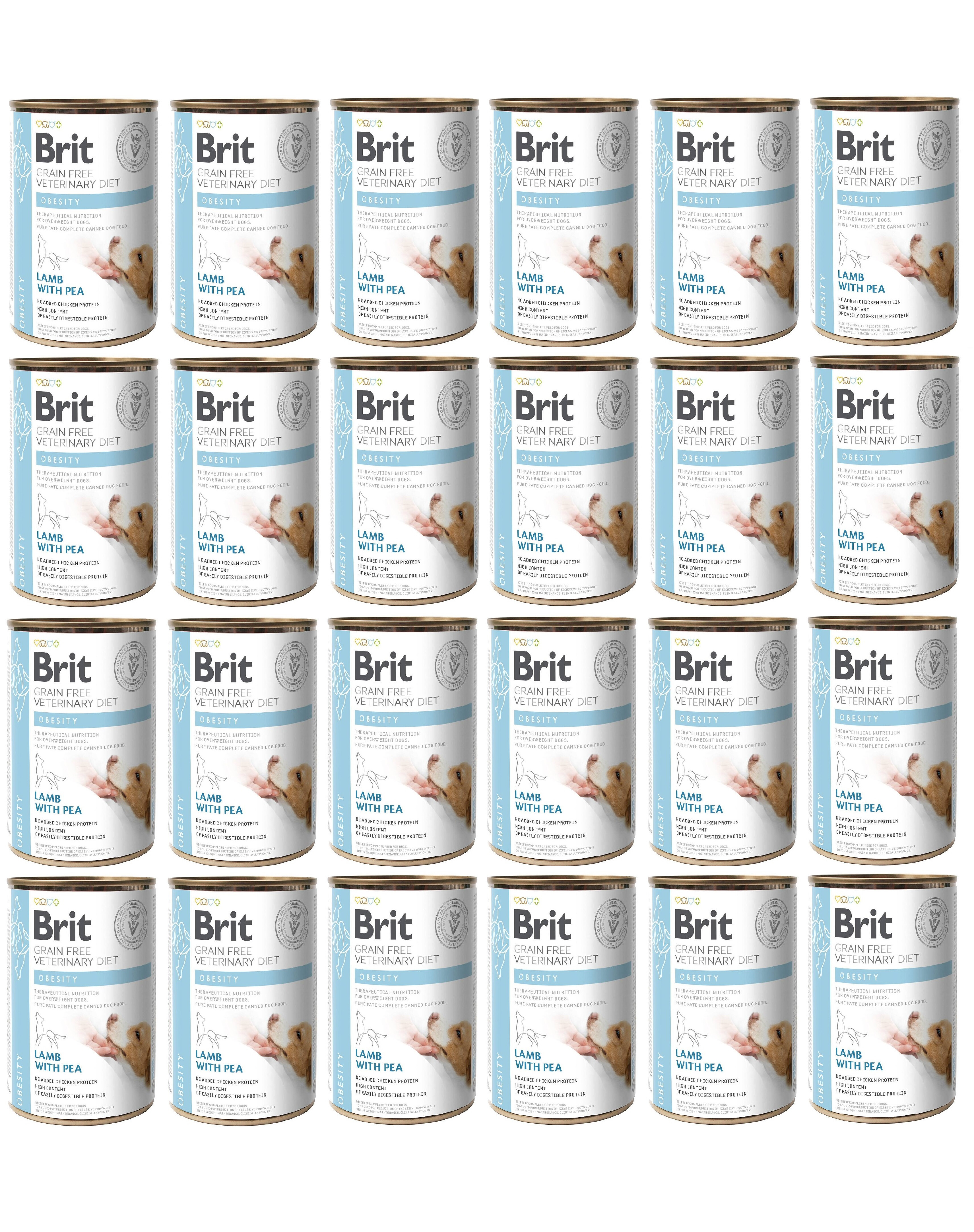 Veterinární konzerva s jehněčím a hráškem pro dospělé psy s nadváhou nebo obezitou.