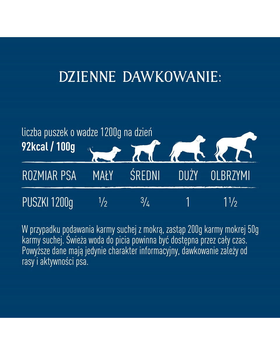 Zajistěte čerstvou vodu. Dávkování je pouze orientační, závisí na rase a aktivitě psa.