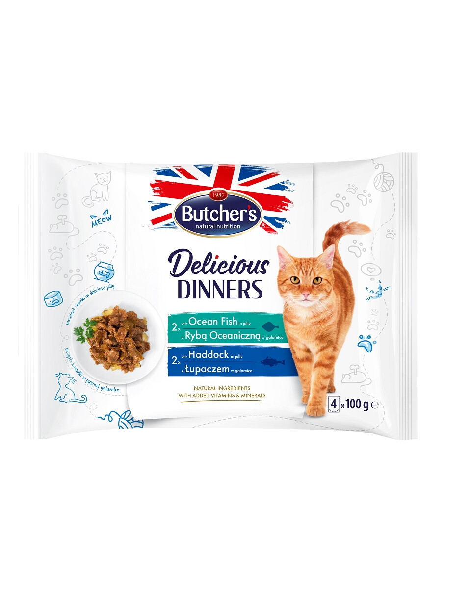 Toto kompletní krmivo ve formě šťavnatých kousků s nejkvalitnějšími mořskými rybami a treskou jedlou (mořská ryba z čeledi tresek) v lahodném želé vašeho mazlíčka jistě potěší. Receptura založená na surovinách přírodního původu je obohacena o vitamíny a minerály, které vaše kočka potřebuje pro zdravý a spokojený život. Příchuť, které neodolá ani ten největší kočičí jedlík.
