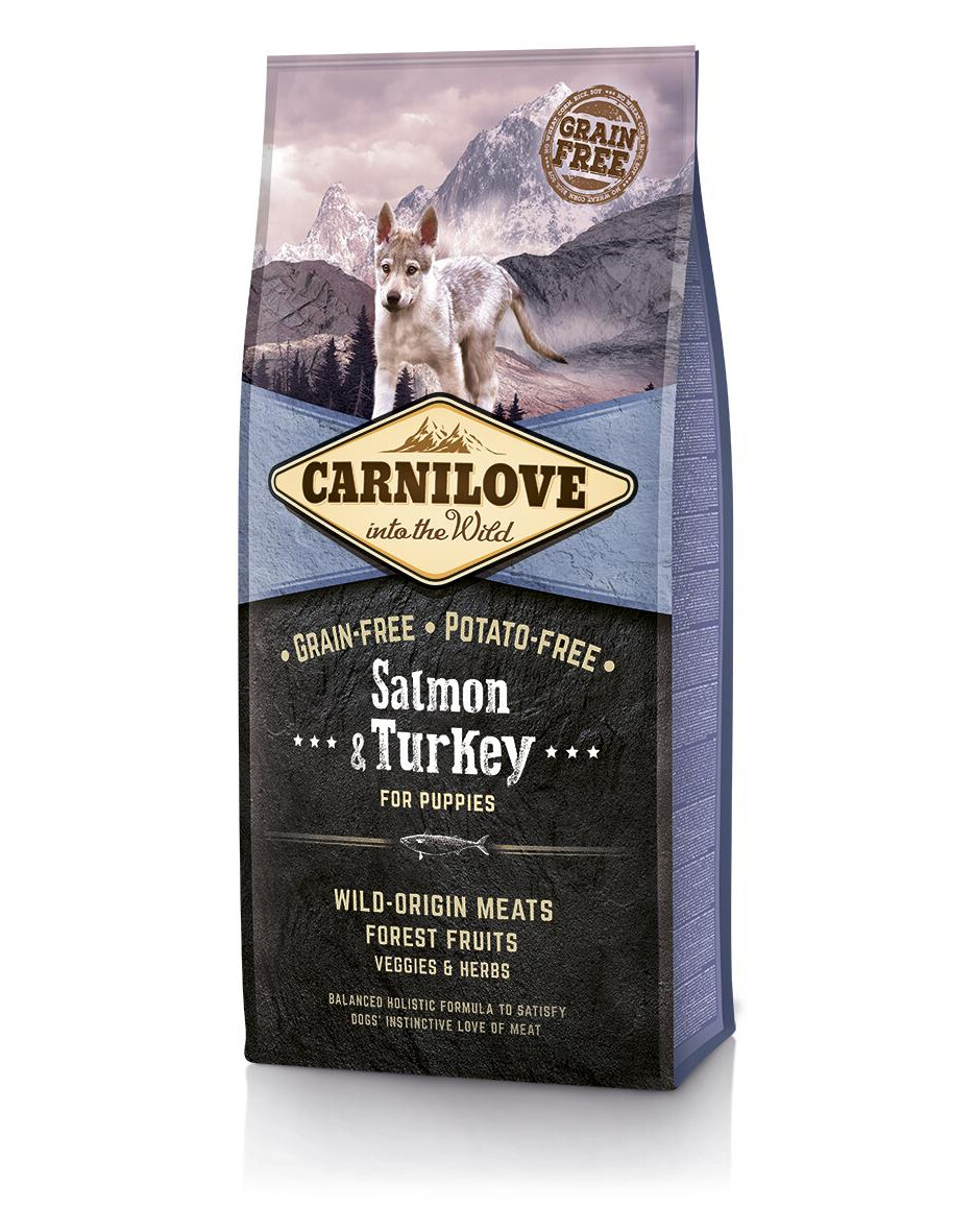 Kompletní holistické krmivo pro štěnata s lososem a krocanem.