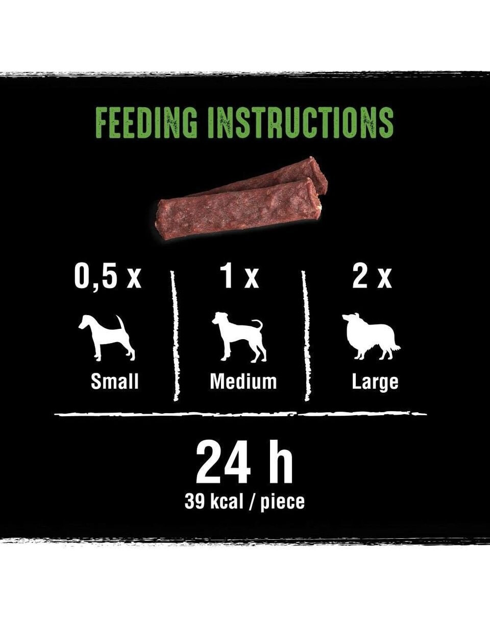 Žvýkací proužky s vysokým obsahem bílkovin. Bílkoviny živočišného původu poskytují odpovídající úroveň energie.