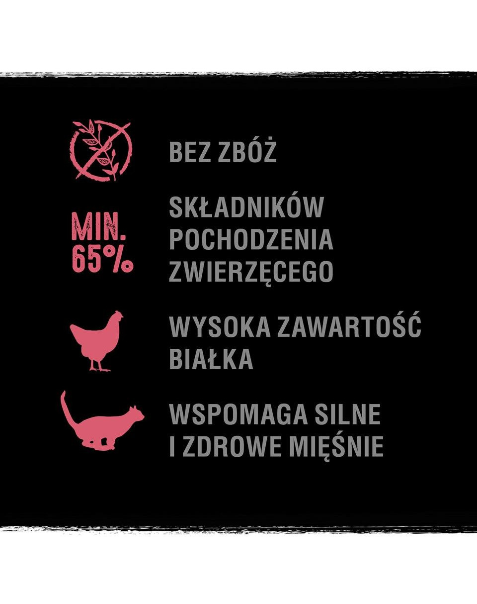 Toto kompletní krmivo pro kočky s vysokým obsahem živočišných bílkovin je dodáváno ve formě paštiky v praktickém sáčku. Jeho složení nepoužívá umělá aromata a barviva. Neobsahuje ani obiloviny, kukuřici, sóju a mléčné výrobky.