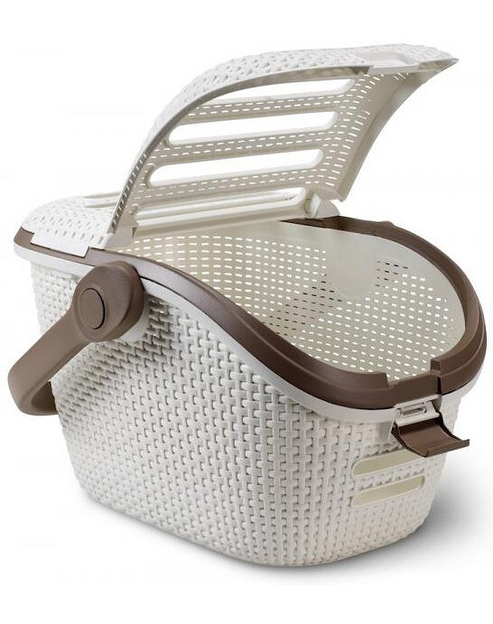 Krásný přepravní box pro kočky a malé psy poskytuje zvířete při cestování pohodlí. Přepravka s vintage vzhledem a imitací ratanu je nejen stylová, ale i praktická. Bezpečné uzavření díky uzávěru s funkcí CLIP. Horní kryt s otvory zajistí kočce nebo psovi stálý přívod světla a vzduchu. Víko usnadňuje i krmení a hlazení zvířete během přepravy. Přepravka disponuje praktickou sklápějící rukojetí v hnědé barvě.