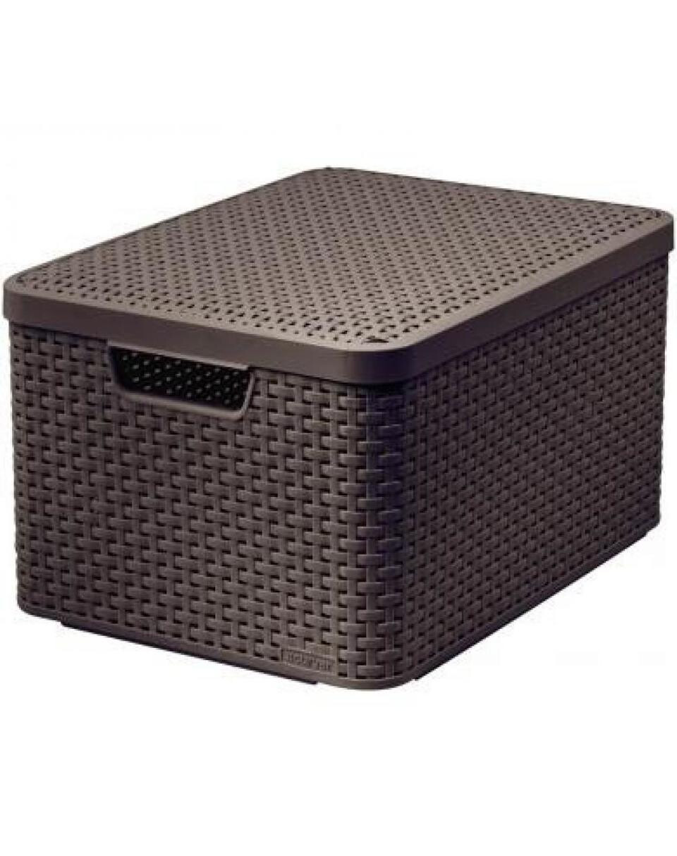 Úložný box je stohovatelný s 2 úchyty pro jednodušší manipulaci s boxem. Otvory ve výpletu zajišťují cirkulaci vzduchu.