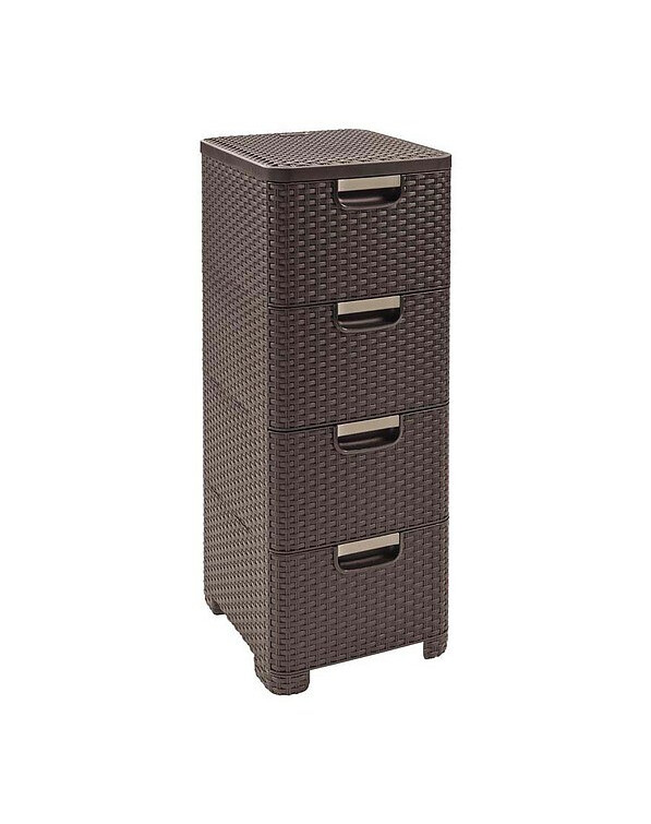 Praktická knihovna s moderním designem bude užitečná v každém domě. Má čtyři velké zásuvky s držadly, které jsou odolné a hlavně velmi snadno se čistí. Knihovna je ideální pro koupelnu, ložnici nebo jako kontejner na stole. Vysoce kvalitní materiál, ze kterého je vyroben, se ve své struktuře podobá oblíbenému ratanu, který se perfektně hodí do jakéhokoli interiéru.