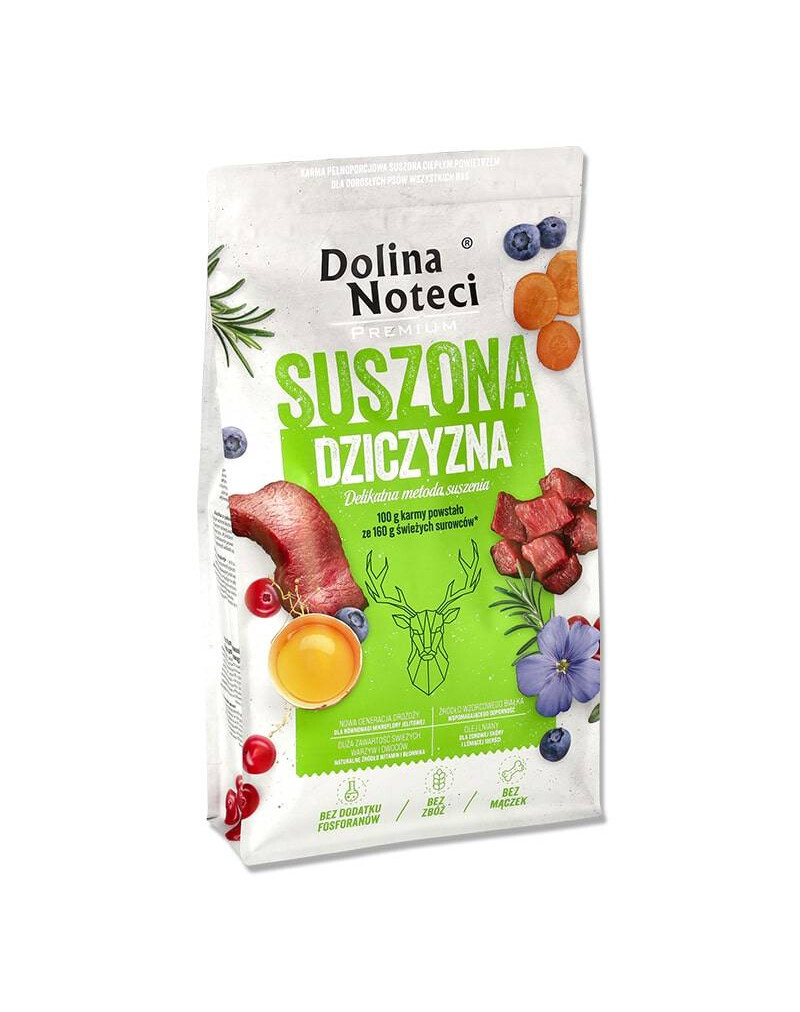 DOLINA NOTECI Premium Dried Dog Food je jedinečná řada produktů určených pro krmení dospělých psů, která se vyrábí pomocí inovativní technologie sušení při nízkých teplotách. Tento proces zajišťuje, že si čerstvé suroviny použité při výrobě zachovávají vysokou výživovou hodnotu a minimalizují se ztráty cenných vitamínů a minerálů. Suché krmivo v sobě spojuje mnoho výhod: bohaté a jedinečné nutriční hodnoty, nízkou náročnost na zpracování, pohodlnou konzumaci a vysokou chutnost.