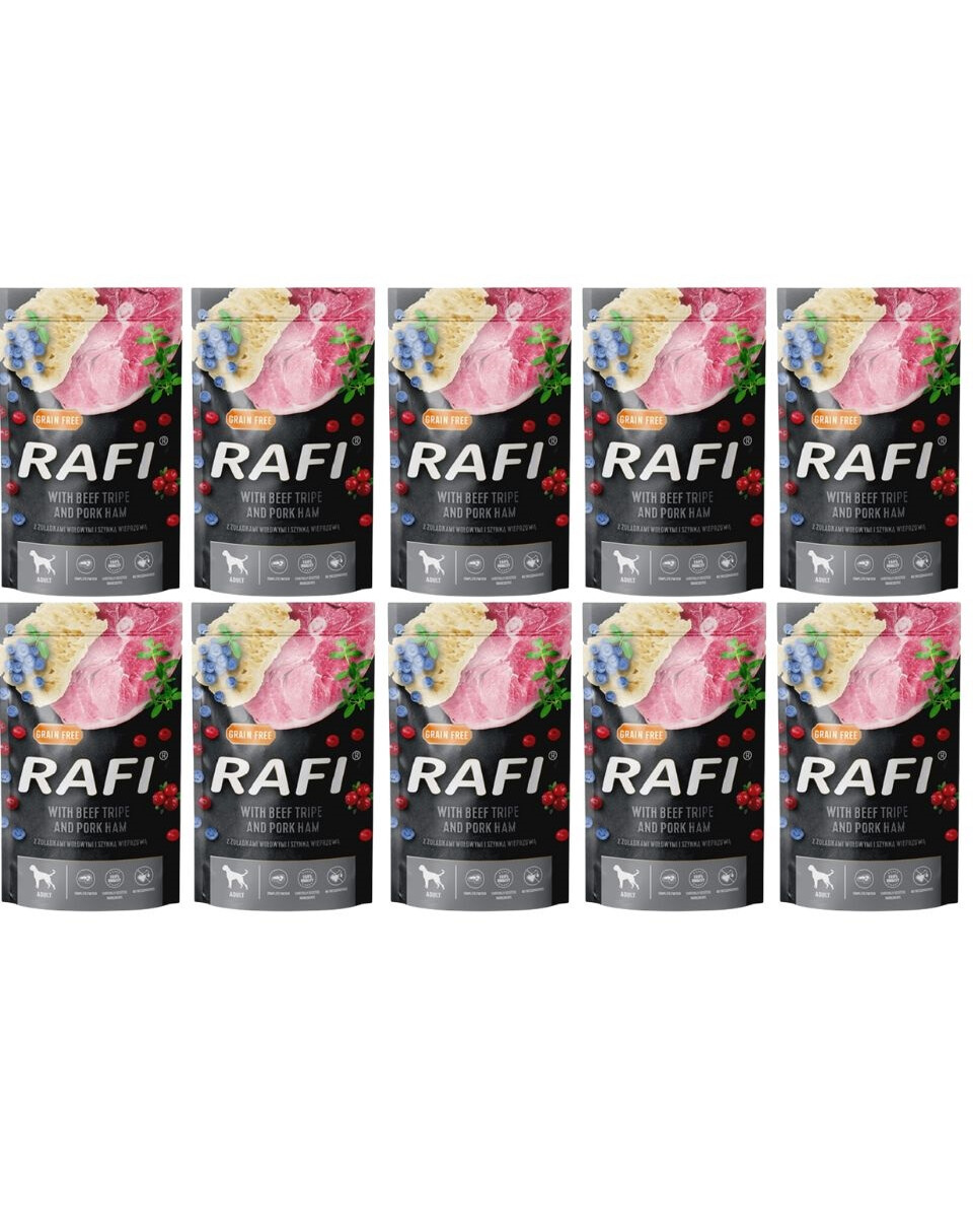 Receptura s hovězími žaludky a vepřovou šunkou poskytuje potřebné minerály a vitamíny pro uspokojení potřeb dospělých psů. Zajišťuje správnou mineralizaci kostí a zubů a správný průběh všech metabolických procesů. Přídavek borůvek a brusinek obohacuje psí stravu o mnoho cenných biologicky aktivních látek a tymián zvyšuje chutnost krmiva. Neobsahuje obiloviny ani cukr, takže je snadno stravitelné.
