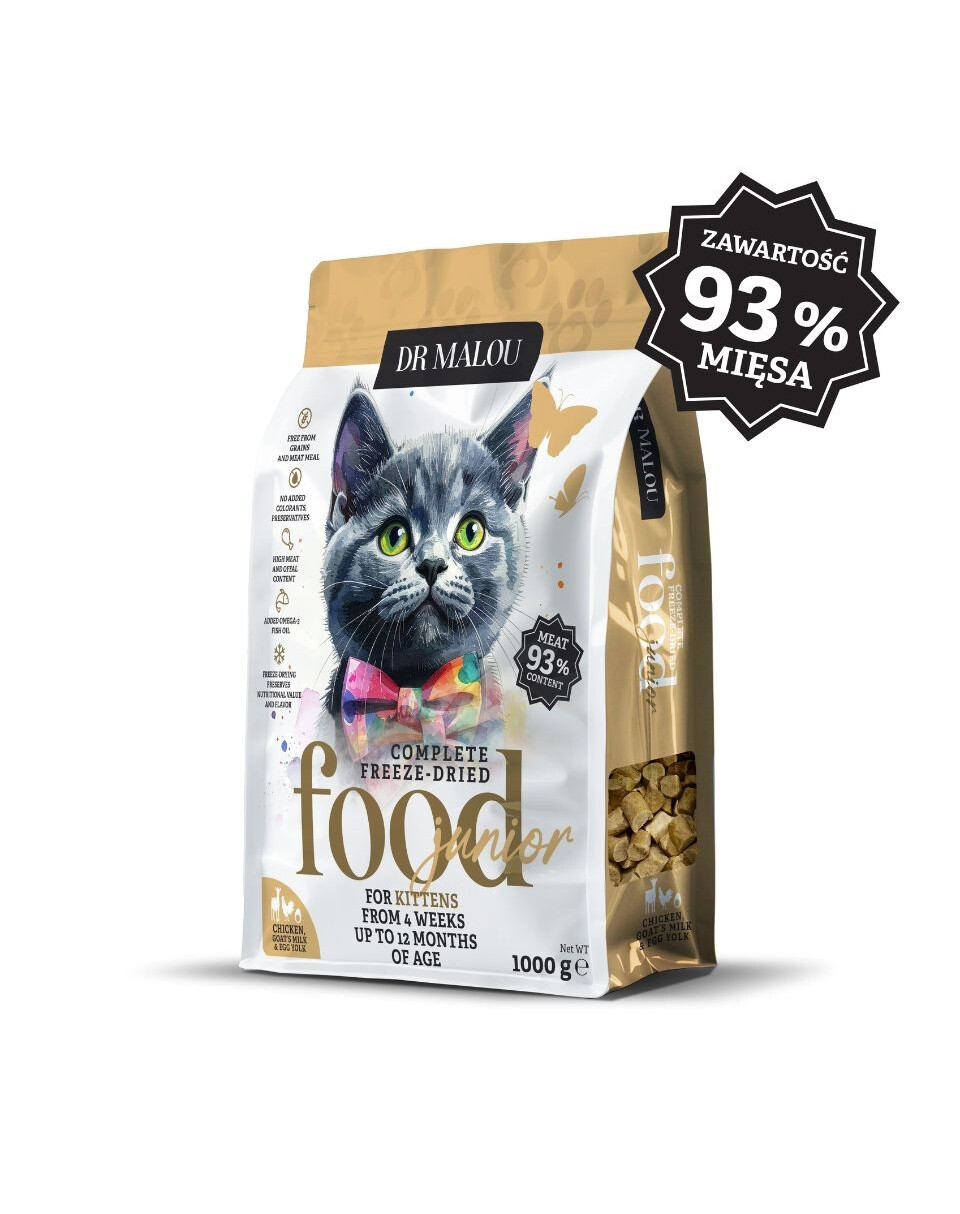Národní, liofilizované krmivo, vytvořené s ohledem na koťata do 12 měsíců věku. Díky vysokému obsahu kuřecího masa a vnitřností, stejně jako speciálním přísadám, jako je kozí mléko a žloutek, krmivo podporuje intenzivní růst, imunitu a vývoj kostí a svalů. Křupavá struktura povzbuzuje koťata k žvýkání, a po zalití vodou se stává jemným, aromatickým jídlem.