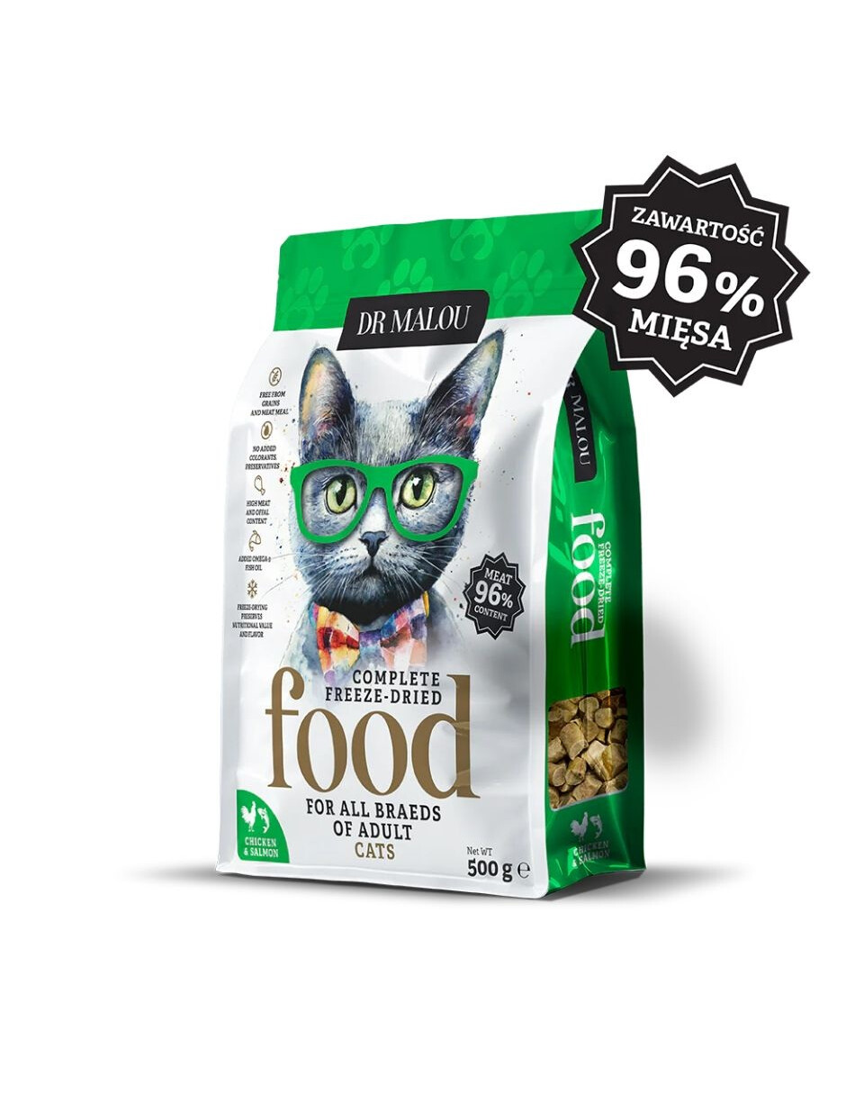 Dr Malou Lyofilizované Krmivo Kompletní pro Dospělé Kočky – Kuřecí s Lososem