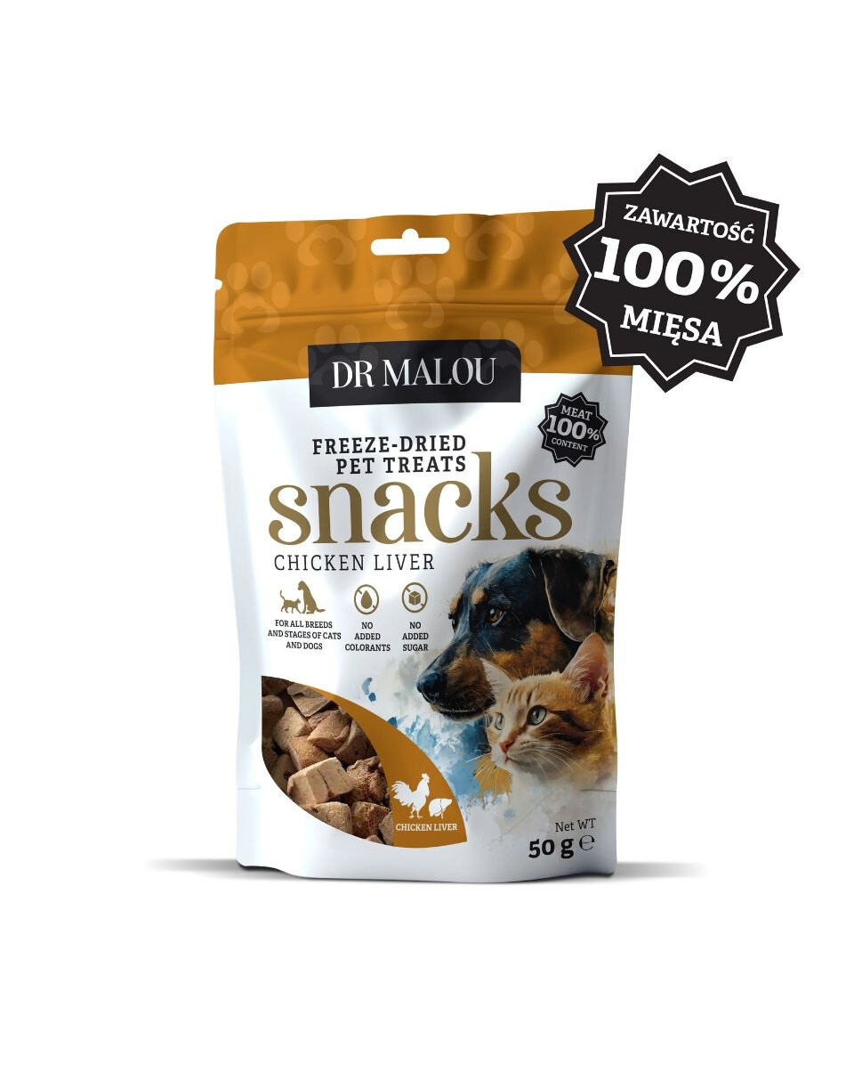 Sušená kuřecí játra Dr Malou – 100% sušená, přírodní doplňková strava pro psy a kočky. Bez obilovin, konzervantů a umělých přísad. Bohatá na vitamíny a minerály, vhodná pro zvířata všech věkových kategorií. Vyzkoušejte a přesvědčte se, jak si váš mazlíček zamiluje tuto výjimečnou pochoutku!