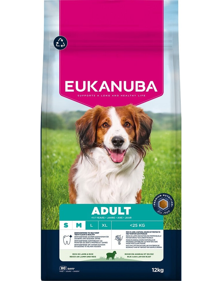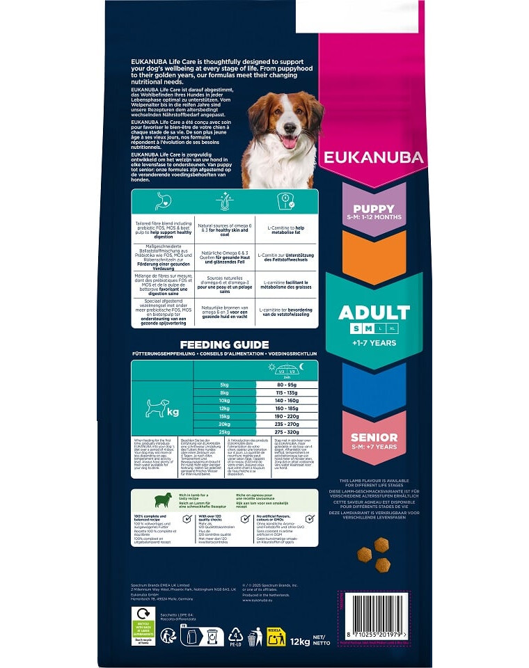 EUKANUBA Life Care je prémiová řada krmiv, vyvinutá na základě vědeckého výzkumu, aby podporovala potřeby psů v každém životním období. Varianta Adult Small & Medium Breeds Lamb & Rice byla vytvořena pro dospělé psy malých a středních plemen ve věku 1–7 let.