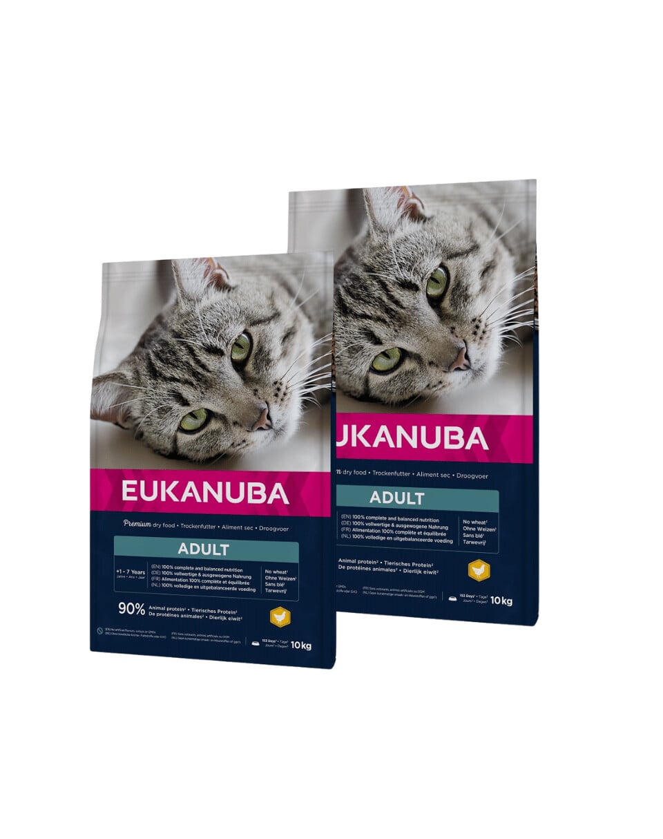 Poté, co vaše kočka dosáhne jednoho roku, zvažte přechod na výživu pro dospělé. V Eukanubě věříme, že kočky pocházejí z masožravců, a proto by měly být dospělé kočky správně vyživovány. Proto nabízíme krmivo pro dospělé kočky, které je 100% kompletní a vyvážené díky vysokému obsahu bílkovin s biologickou hodnotou. Protein poskytuje tělu živiny (nazývané aminokyseliny), které jsou nezbytné pro nepřetržitou tvorbu a obnovu tkání a pro správné fungování těla, včetně boje s infekcí a regulace hormonální rovnováhy. Krmivo, které obsahuje všechny esenciální aminokyseliny v poměru potřebném pro zdravý růst, je považováno za krmivo s vysokou biologickou hodnotou. To je důvod, proč všechna krmiva pro kočky Eukanuba obsahují živočišné bílkoviny (kuřecí, vepřové atd.).