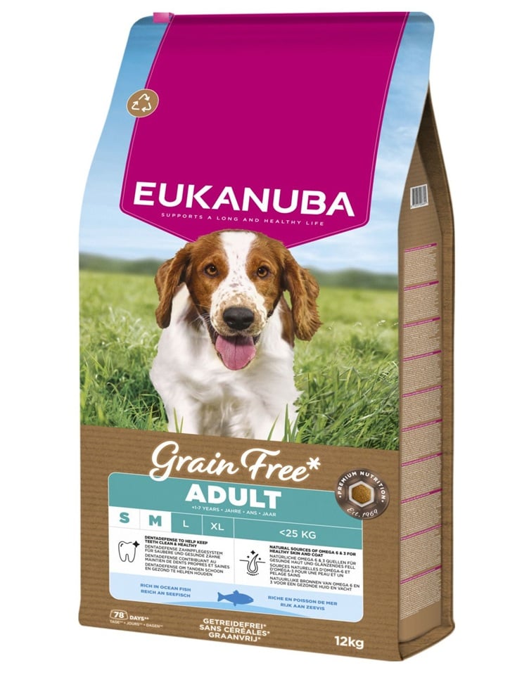 Eukanuba Grain Free je skvělá volba pro psy s citlivým trávicím systémem, intolerancí na obiloviny nebo vyžadujícími jemnou, monoproteinovou dietu na bázi ryb.