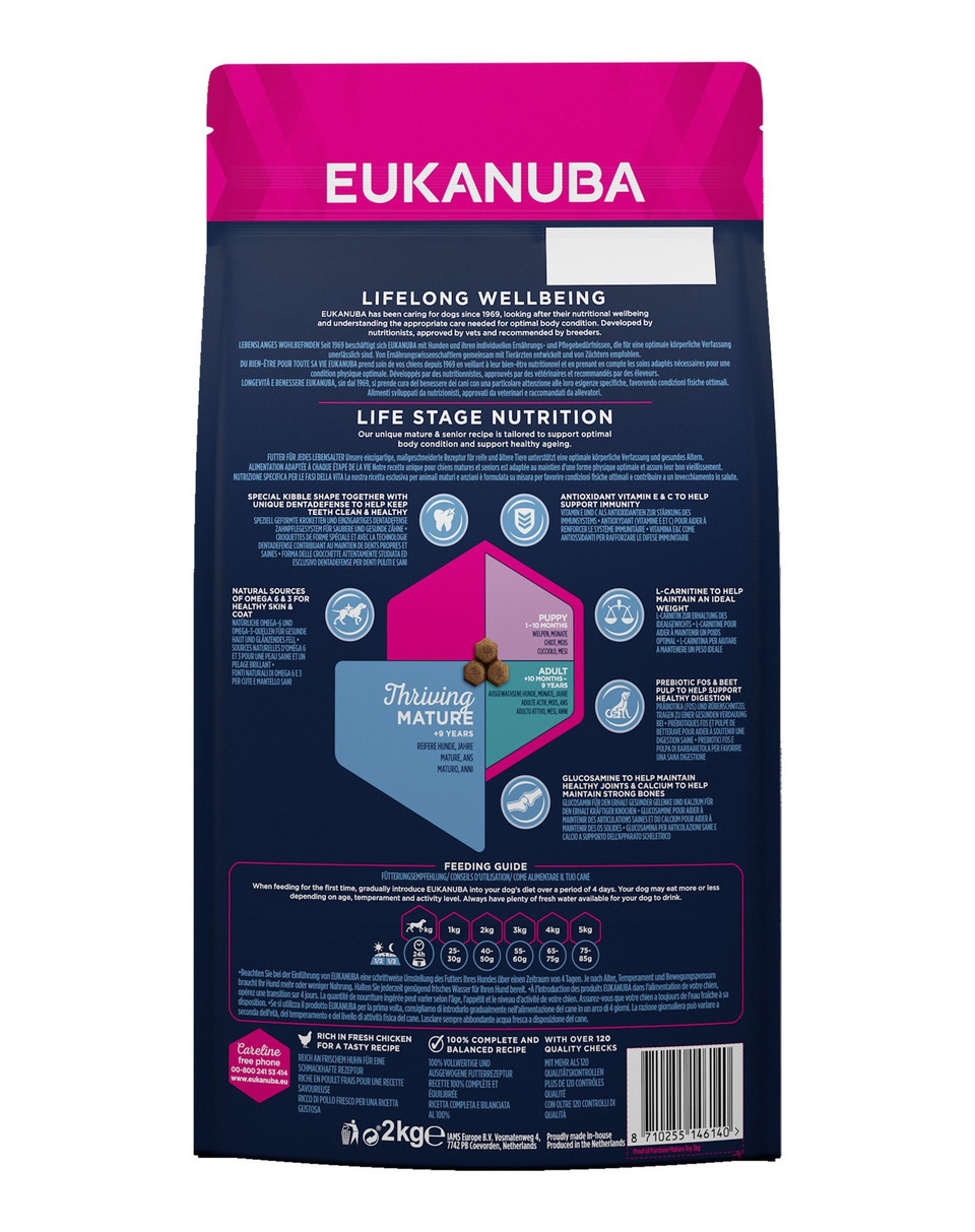 Nový a vylepšený recept EUKANUBA je přizpůsoben životnímu stavu psa. 100% kompletní krmivo pro dospělé psy (prosperující mature) miniaturních plemen ve věku od 9 let, poskytuje výživu pro podporu optimální tělesnou kondici a zdravého stárnutí.