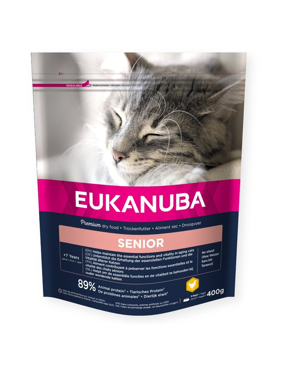 Suché krmivo EUKANUBA pro starší kočky je 100% kompletní a vyvážené. Až 89 % bílkovin v tomto lahodném krmivu bohatém na čerstvé kuřecí maso pochází z živočišných zdrojů, které podporují vývoj a udržování svalové hmoty.