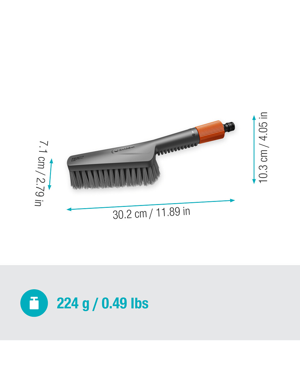 Jednoduše připojte kartáč k vodovodnímu potrubí, připojte k mýdlové kazetě. Přenosný ruční kartáč vám pomůže s mokrým čištěním malých, choulostivých povrchů, jako je zahradní nábytek, a díky mýdlové kazetě čistí obzvlášť důkladně, aniž byste se museli neustále ohýbat pro kbelík. Plochá, flexibilní konstrukce umožňuje precizní čištění i na těžko přístupných místech. Rohy a hrany nejsou pro kartáč žádný problém a protiskluzová rukojeť zajišťuje bezpečný a stabilní provoz.