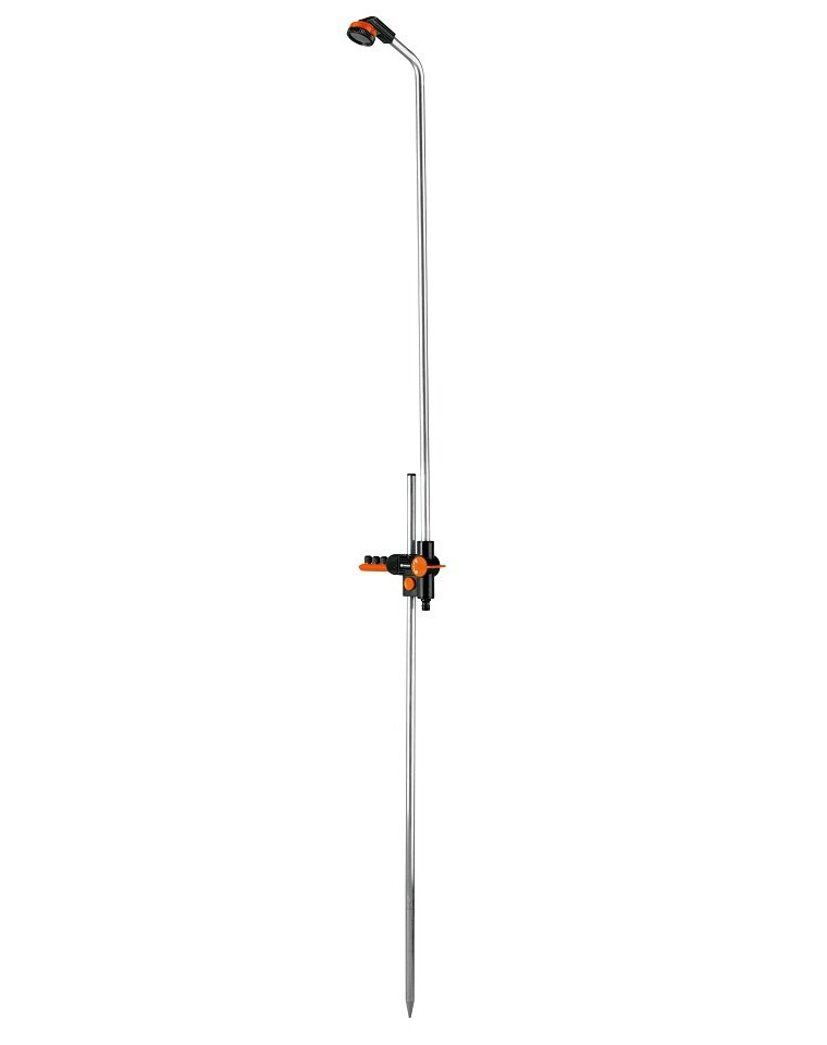 Tyč zajišťuje stabilní umístění proudu na trávníku nebo hladkém povrchu. Zahradní sprchu lze snadno umístit na trávník nebo na stojan se zahradním slunečníkem.