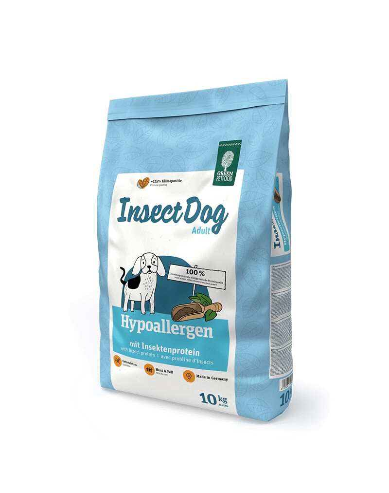 Bezobilné, hypoalergenní krmivo pro psy GREEN PETFOOD InsectDog Hypoallergen je kompletní krmivo pro dospělé psy, speciálně vyvinuté pro psy s citlivým trávicím systémem a sklonem k alergiím.