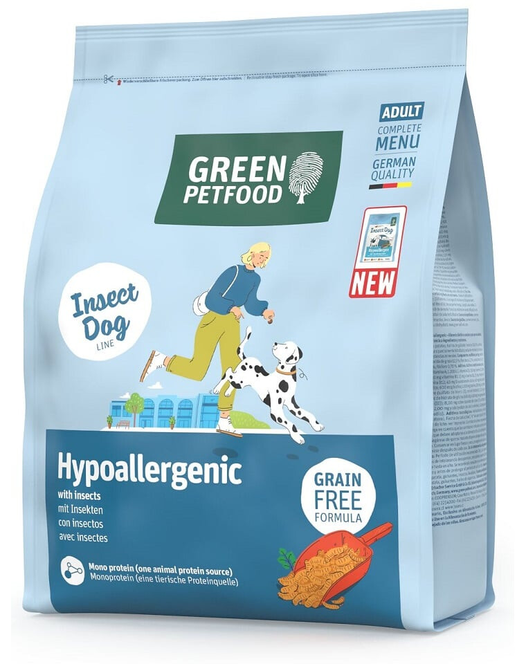 Bezobilné, hypoalergenní krmivo pro psy GREEN PETFOOD InsectDog Hypoallergen je kompletní krmivo pro dospělé psy, speciálně vyvinuté pro psy s citlivým trávicím systémem a sklonem k alergiím.