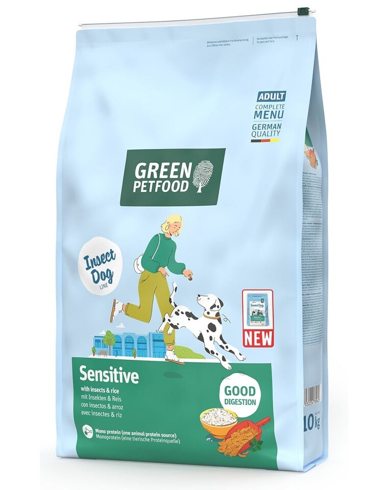 Green Petfood Sensitive with Insects & Rice je snadno stravitelná prémiová krmiva, vytvořená speciálně pro dospělé psy s citlivým trávicím systémem. Její unikátní receptura se zakládá na hmyzí bílkovině, která představuje vzácně používaný, ale zároveň výjimečně dobře tolerovaný zdroj živočišného bílkoviny. Díky tomu je krmivo ideální pro psy s potravinovými alergiemi nebo intolerancemi.