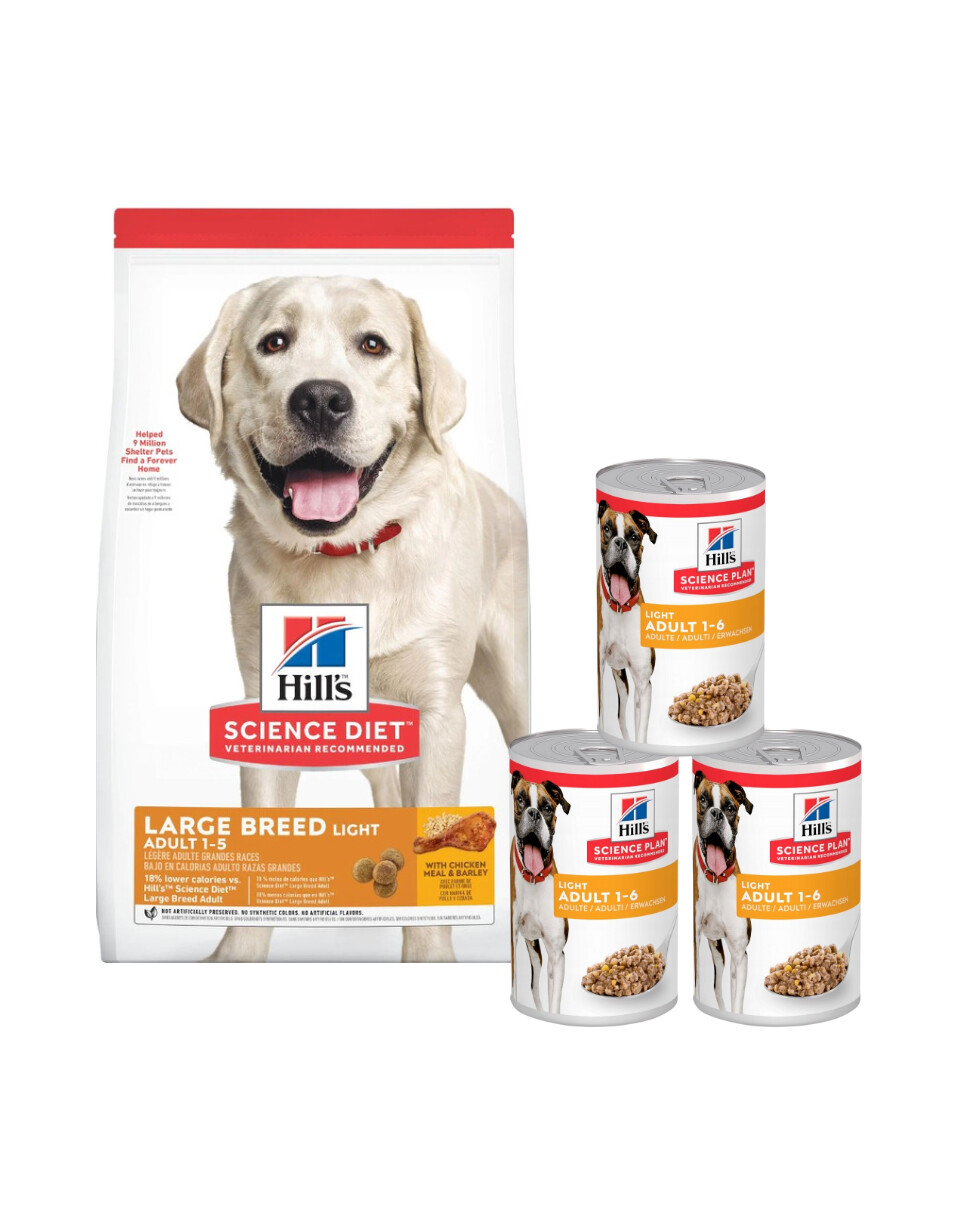 Hill's Science Diet Large Breed Light Adult je přesná výživa pro méně aktivní dospělé psy velkých plemen, kteří vyžadují nízkokalorickou stravu pro udržení zdravé hmotnosti a životního stylu.