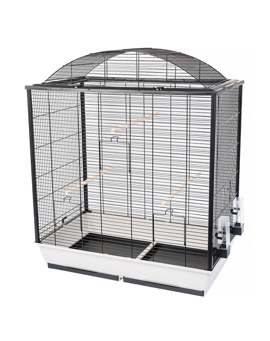 Klec je velmi estetická a hodí se do každého interiéru. Klec je vybavena 2 velkými krmítky a 3 bidýlky, která umožňují ptákům odpočívat nebo si hrát, a lze je také použít jako místo pro připevnění ptačích hraček nebo doplňků. Umístění krmítek bylo upraveno tak, aby ptáci optimálně létali a skákali z místa na místo.