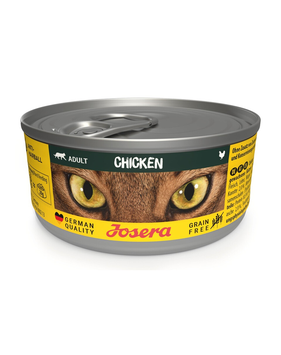 Mmm, čas na chutné zpestření! Naše nová řada mokrých krmiv v plechovkách pro kočky nabízí ještě větší výběr a ještě více chutí v misce. Váš mazlíček bude nadšený z lahodného jídla Josera Chicken s jemným kuřecím masem. Bezobilná receptura byla obohacena o lososový olej, který dodává nezbytné omega-3 mastné kyseliny a posiluje chuťové vlastnosti.