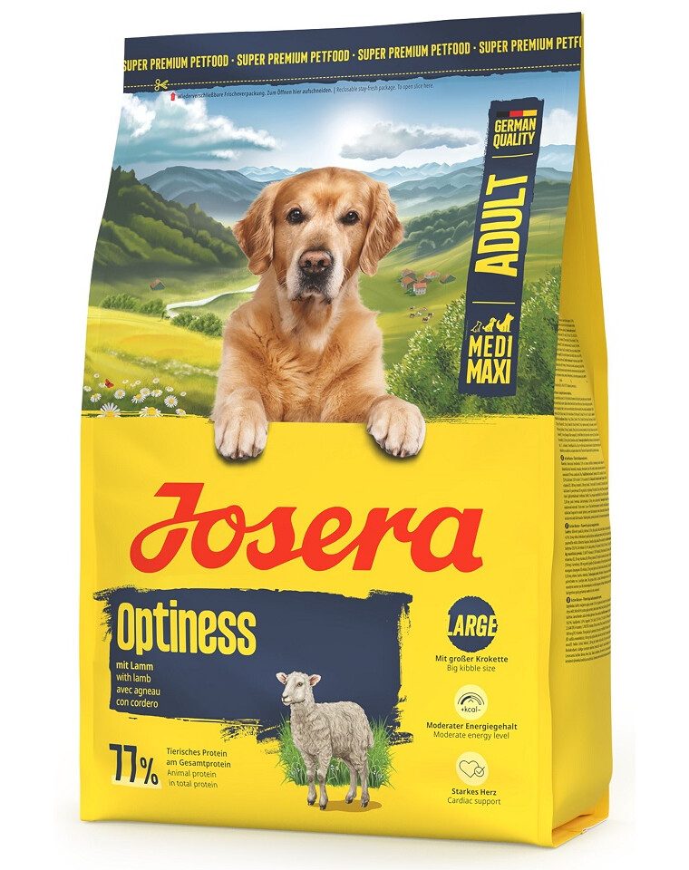 JOSERA Optiness Adult je kompletní suché krmivo vytvořené speciálně pro psy středních a velkých plemen. Díky receptuře s jehněčím masem a rýží zajišťuje vynikající toleranci a je vhodné i pro vybíravé mazlíčky.