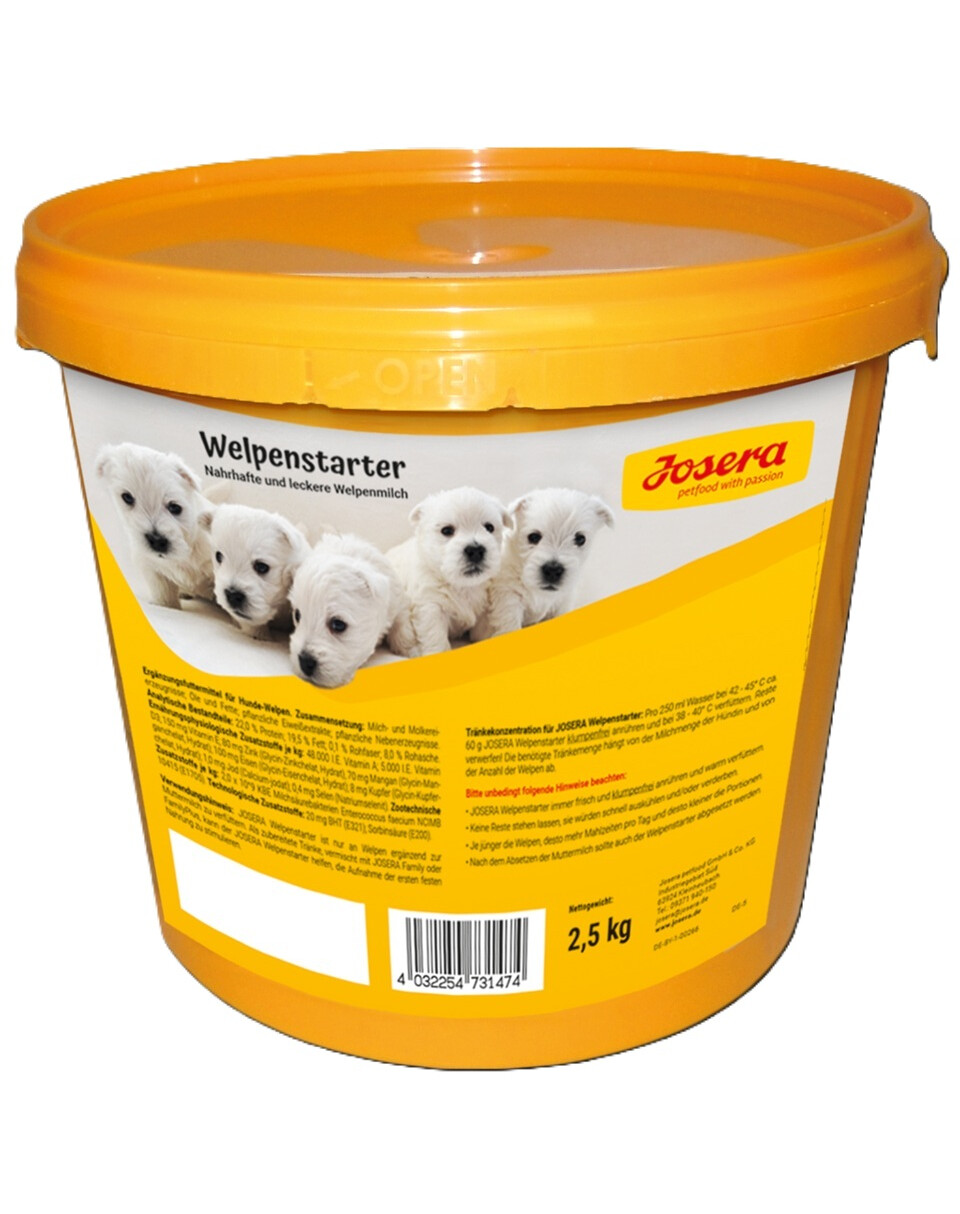 JOSERA Puppy Starter je mléko pro štěňata, určené k doplnění stravy v období odchovu, zejména v situacích nedostatečného množství mateřského mléka.