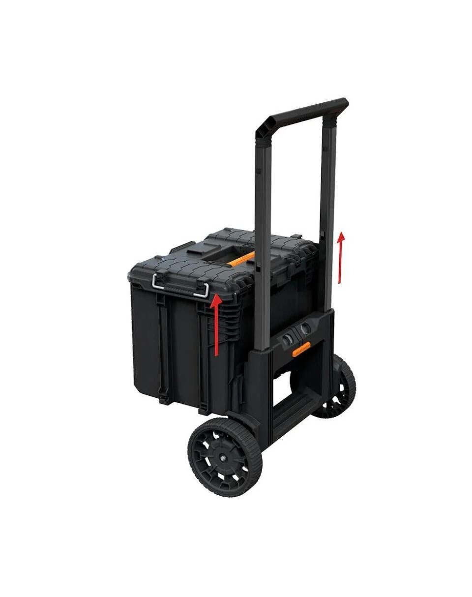 Je vybaven inovativními funkcemi, jako je odnímatelná teleskopická rukojeť s 9" koly pro snadné naložení do kufru auta a rychlé přenesení do jiného boxu XL. Box má také možnost zavěšení na zeď (po uvolnění teleskopické rukojeti - rukojeť není součástí balení, velikost L). Robustní konstrukce umožňuje bezpečnou přepravu těžkého nářadí a profilované víko umožňuje připojit poloviny modulu pro ještě flexibilnější uložení nářadí. Box na kolečkách je vyroben ze špičkového plastu, který se vyznačuje vysokou odolností proti mechanickému poškození, což zaručuje dlouholetou životnost. Stupeň krytí IP65 zajišťuje účinnou ochranu proti vodě a prachu, takže box je ideální pro použití za všech povětrnostních podmínek. Dodává se s praktickou úložnou nádobou s víkem, která umožňuje pohodlné uspořádání nářadí a příslušenství. Funkční systém boční montáže boxu je plně kompatibilní se všemi boxy řady Pro Gear 1.0 a ROC Pro Gear 2.0, což vám umožní flexibilně přizpůsobit systém ukládání nářadí. Přizpůsobte si svůj vlastní profesionální systém pro ukládání nářadí s boxem ROC Pro Gear!