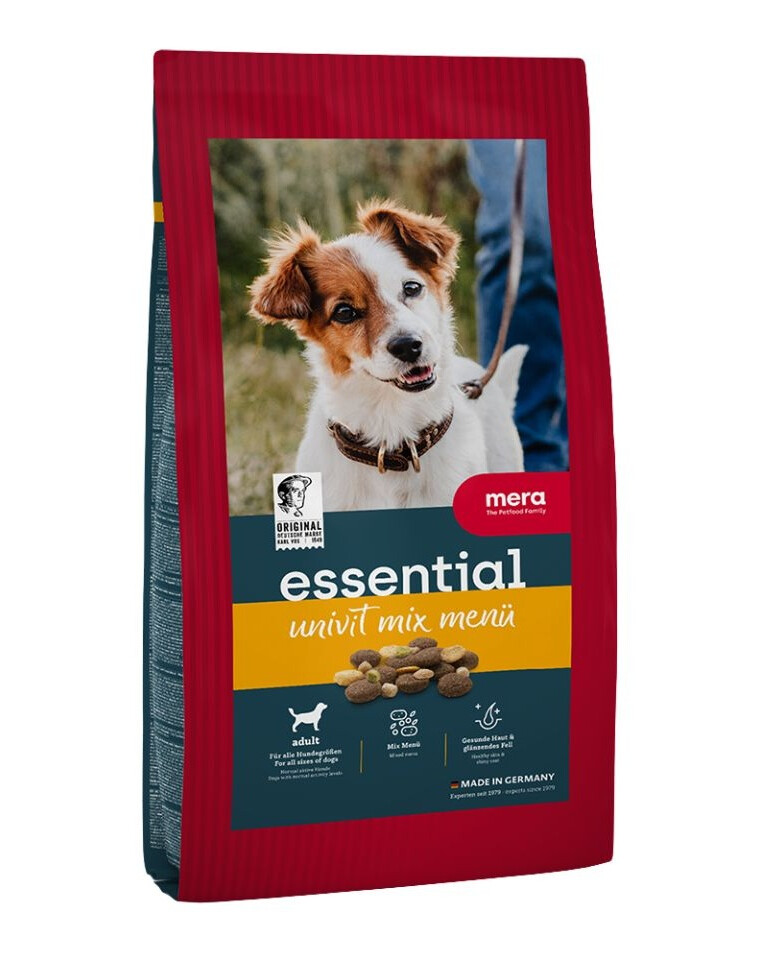 MERA Essential Univit Mix Menu je ideální volba pro dospělé psy všech plemen s normální aktivitou. Vytvořeno podle osvědčených rodinných receptur, spojuje vysokou chutnost, zdravé ingredience a plnou každodenní výživovou hodnotu.