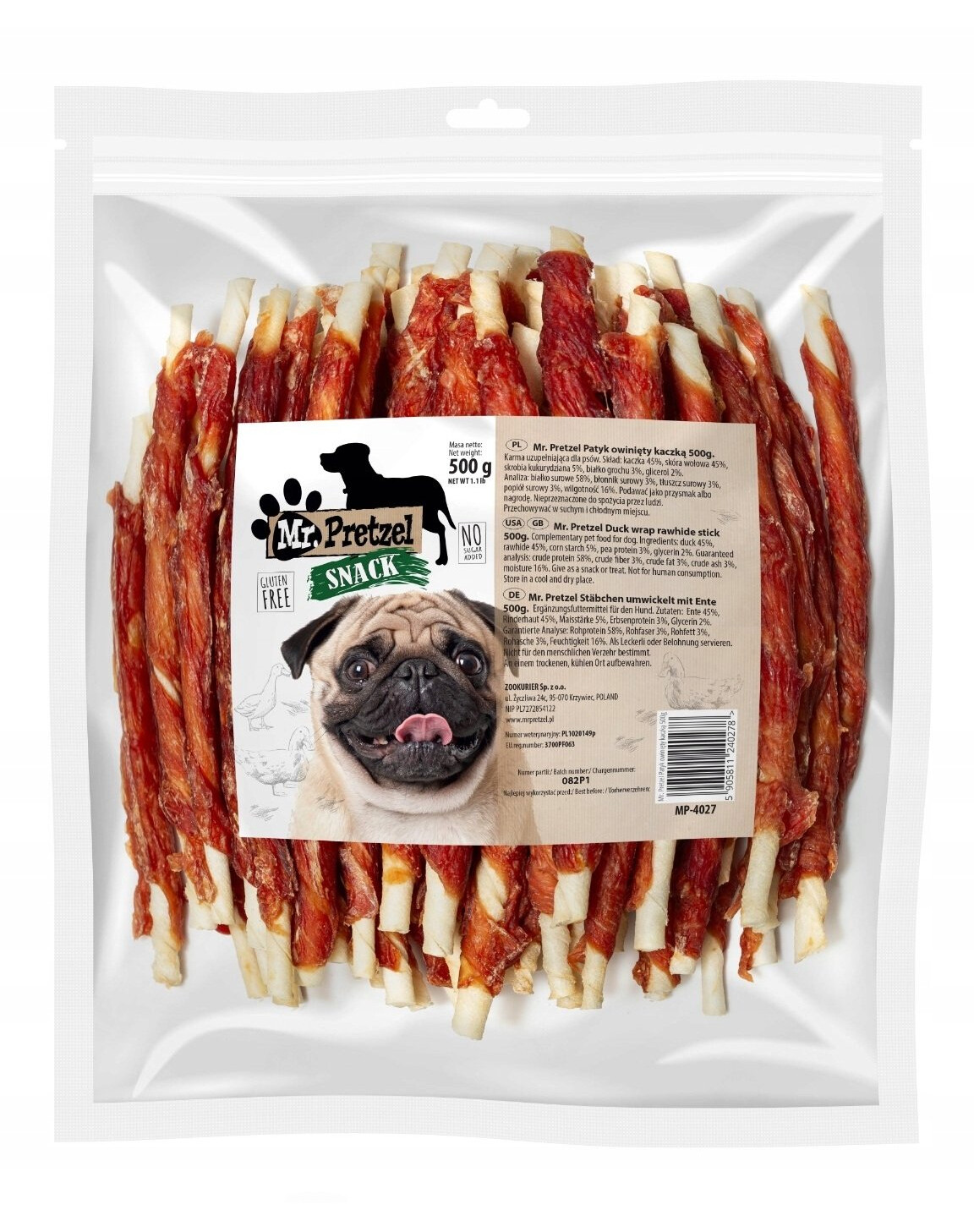 PREMIUM - Mr. Pretzel Tyčinka obalená masem z kachny je vysoce kvalitní, extrémně chutné masové pamlsky pro vašeho čtyřnohého přítele.