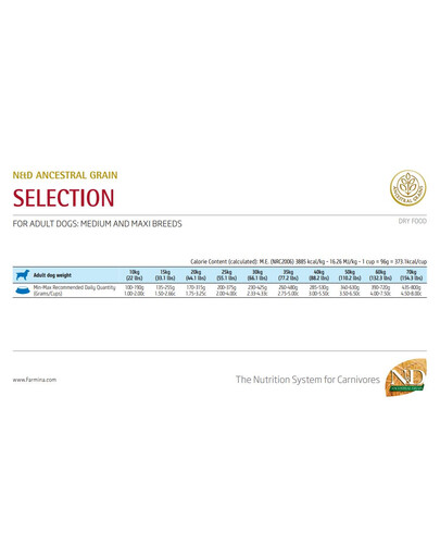 Složení: Čerstvé kuřecí maso (20%), sušené kuřecí maso (18%), špalda (10%), oves (10%), kuřecí tuk, sušená celá vejce, čerstvé sleďové maso, sušené sleďové maso, sušená dřeň řepa, rybí olej (sledě), hrachová vláknina, sušená mrkev, sušená vojtěška, inulin, fruktooligosacharidy, kvasnicový extrakt (zdroj mannanoligosacharidů), sušené ovoce z granátového jablka (0,5%), sušené jablko, sušený špenát, psyllium jitrocel (0,3%) , sušený černý rybíz, sušený pomeranč, sušený borůvkový, chlorid sodný, sušené pivovarské kvasnice, kurkuma (0,2%), glukosamin, chondroitin sulfát