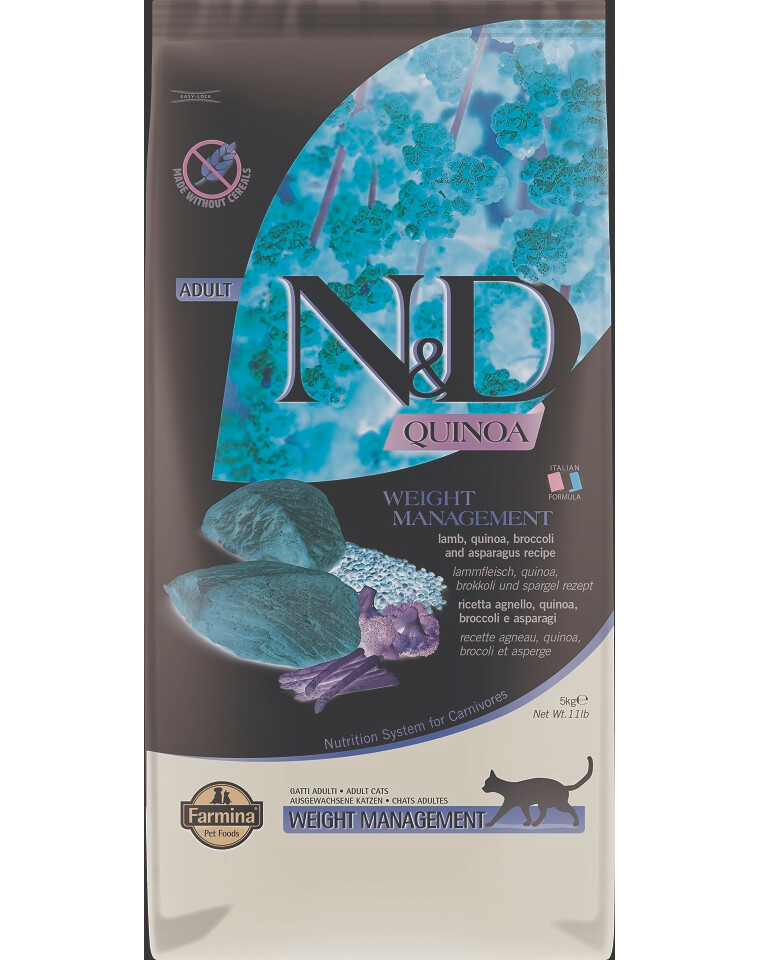 Kompletní bezobilné krmivo pro dospělé kočky s tendencí k nadváze s jehněčím, quinoou, brokolicí a chřestem.