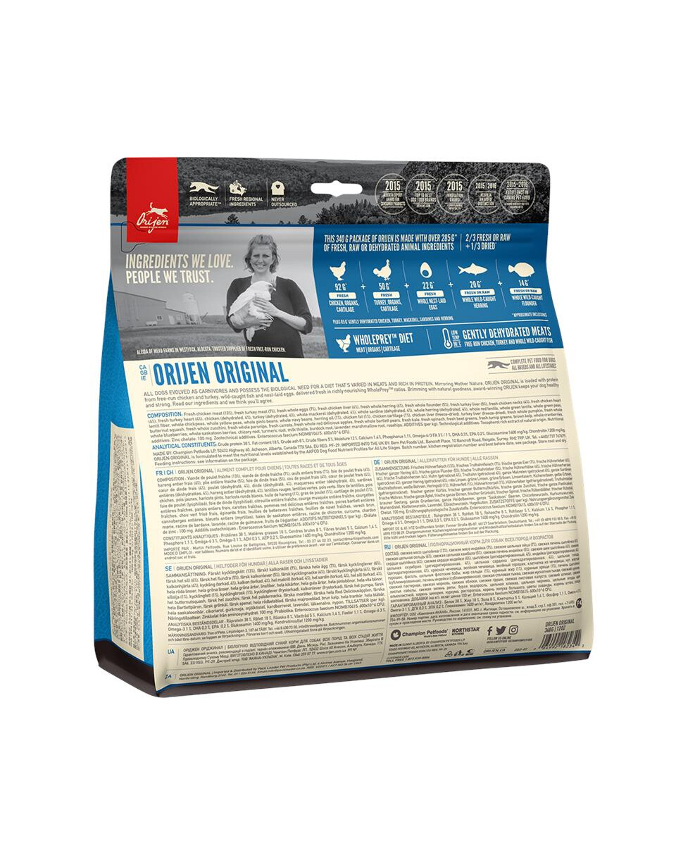 Složení: čerstvé kuřecí maso (13%), čerstvé krůtí maso (7%), čerstvá celá vejce (7%), čerstvá kuřecí játra (6%), čerstvý celý sledě (6%), čerstvý celý platýs (5%), čerstvá krůtí játra (5%), čerstvé kuřecí krky (4%), čerstvé kuřecí srdce (4%), čerstvé krůtí srdce (4%), sušené kuře (4%), sušená krůta (4%), sušená celá makrela ( 4%), sušená celá sardinka (4%), sušená celá sledě (4%), červená čočka, zelená čočka, zelený hrášek, čočková vláknina, cizrna, žlutý hrášek, pinto fazole, fazole haricot, kuřecí tuk (1%), sleďový olej (1%), kuřecí chrupavka (1%), lyofilizovaná kuřecí játra, lyofilizovaná krůtí játra, čerstvá dýně, čerstvá ořešák, čerstvá cuketa, pastinák, mrkev, červená jablka, hrušky, kel, špenát, červená řepa , listy řepy, řasy, brusinky, borůvky, jahody, kořen čekanky, kořen kurkumy, ostropestřec mariánský, kořen lopuchu, květy levandule, kořen marshmallow, šípek, Enterococcus faecium.