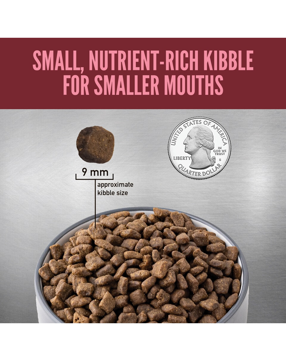 Orijen Small Breed je bohatý na krůtu, kuře, křepelky, vejce a ryby. Krmivo bylo vyvinuto speciálně pro menší psy. Malé granulky jsou pro malé psy snazší k jídlu. Masové složky v receptuře Small Breed pocházejí z malých druhů zvířat a odrážejí tak evoluční stravu psů malých plemen.
