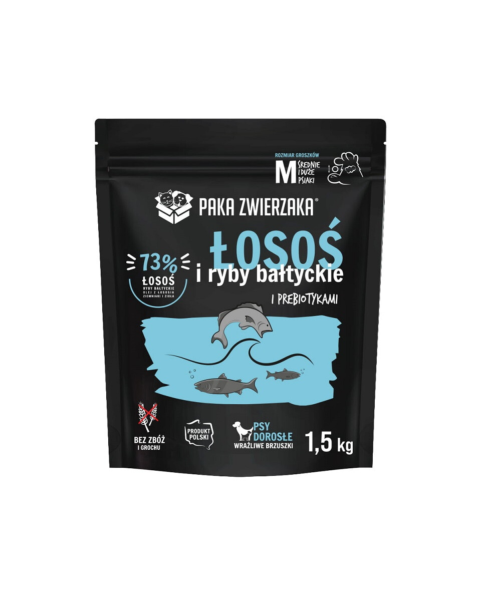 Maso z lososa nejvyšší kvality, baltské ryby, zelenina a bylinky pocházející od místních dodavatelů zajistí vysokou chutnost a snadnou stravitelnost. Ideální receptura pro psy s citlivým žaludkem a nesnášenlivostí obilovin.